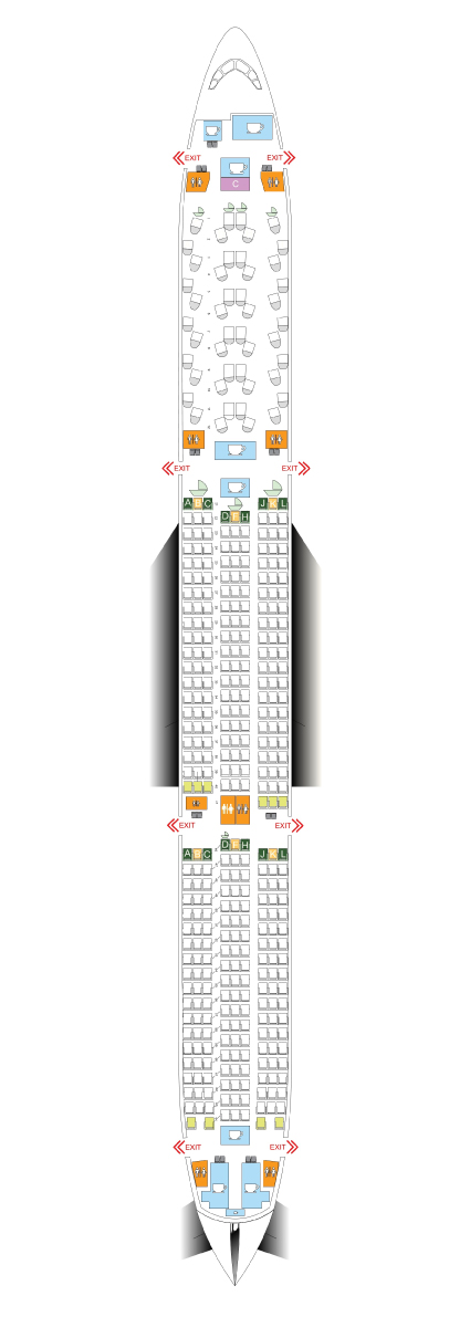 Ethiopian Airlines' Airbus A350-1000, under the ET-AWB family, is the flagship of its fleet, offering 46 Cloud Nine (Business Class) and 395 Economy Class seats. Known for its advanced technology and fuel efficiency, the A350-1000 features a quiet and spacious cabin, extra-wide seats, modern mood lighting, and high-definition inflight entertainment (IFE). This aircraft is primarily deployed on high-demand long-haul routes, delivering a premium experience for both business and leisure travellers.