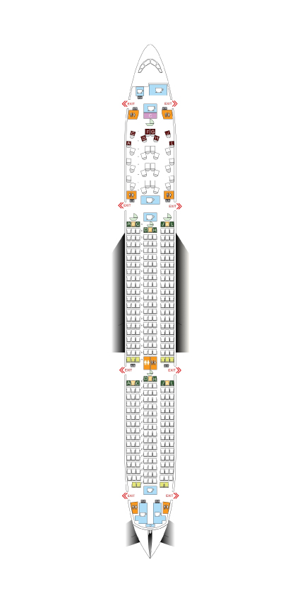Similar to the ATQ family, the A350-900 (ET-AYA family) offers a slightly larger Economy Class cabin with 325 seats alongside 30 Cloud Nine seats. This variant continues to deliver high levels of comfort and operational efficiency. With its sleek design and modern amenities, it supports Ethiopian Airlines' commitment to providing a world-class onboard experience across its growing global network.