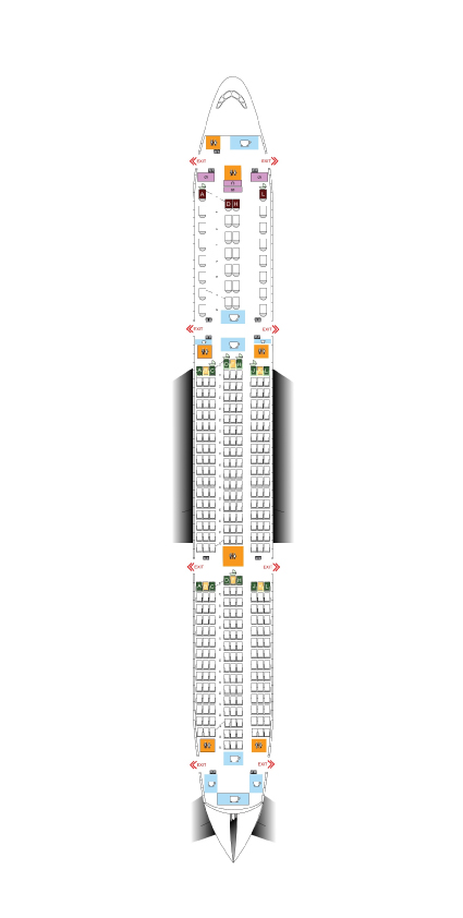 Also part of the Dreamliner fleet, the ET-AXS family mirrors the AUO configuration with 30 Cloud Nine and 285 Economy seats. This aircraft brings the same long-range capabilities and premium inflight experience, with full-flat Business Class seating, personal IFE screens, and modern cabin design, making it a preferred choice for Ethiopian's global operations.